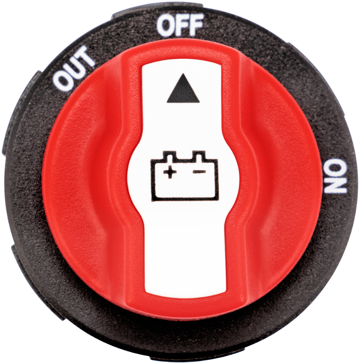Liten og smart batteribryter laget for innbygging. Den har en utvendig diameter på bare 4,5 cm, og tar dermed svært lite plass. Bryteren har valg for on/off. Selve venderen kan tas av.