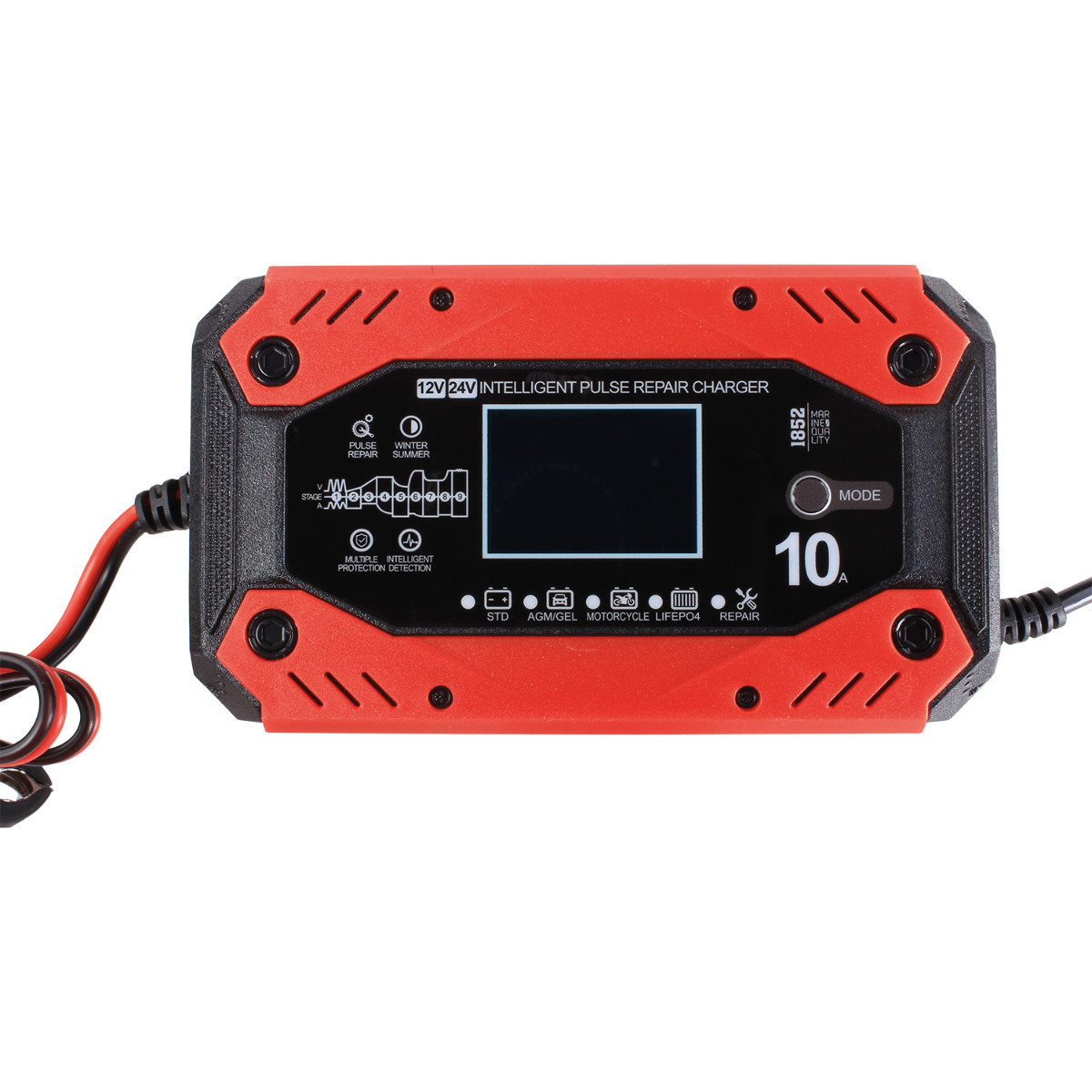 1852 Smartlader 10A 12/24V auto er en brukervennlig og allsidig lader for vedlikehold og lading av både 12V og 24V batterier. Laderen har automatisk spenningsgjenkjenning og LCD-display som viser spenning, strøm og ladestatus for enkel overvåking.Laderen kan benyttes på flere batterityper som STD, AGM/GEL, LiFePO4/Lithium og motorsykkelbatterier. Den har også en egen Repair-modus for regenerering av batterier som er dyputladet. Smartladeren har beskyttelse mot feilpolarisering, kortslutning og overbelastning, samt null-utgang og tvungen utgang for fleksibel bruk.
