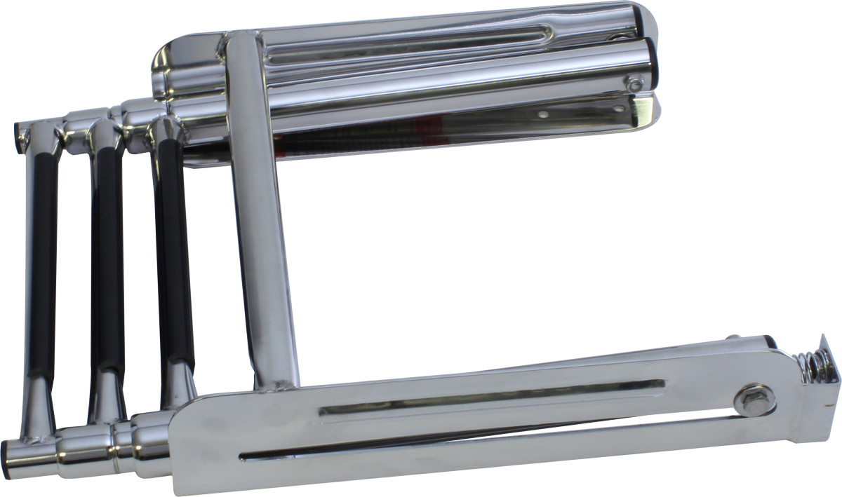 Teleskopstige i kassett for montering under baugspyd, eller plattform. Stigen kan felles inn i kassetten når den ikke er i bruk.Prodnr. 1019460/1019458/1019461, stigen festes med borrelås når den er oppe.
