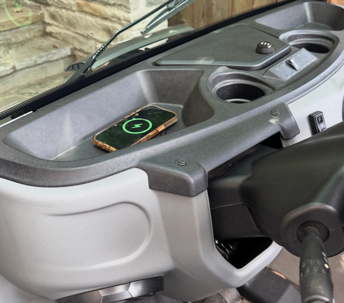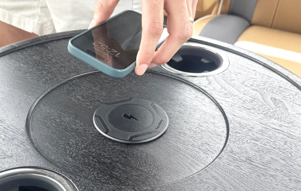 Trådløs magnetisk ladeplate for innbygging i båt, ATV, traktor og lignende. Denne har Qi2-teknologi, som gir ekstra rask 15 W lading.