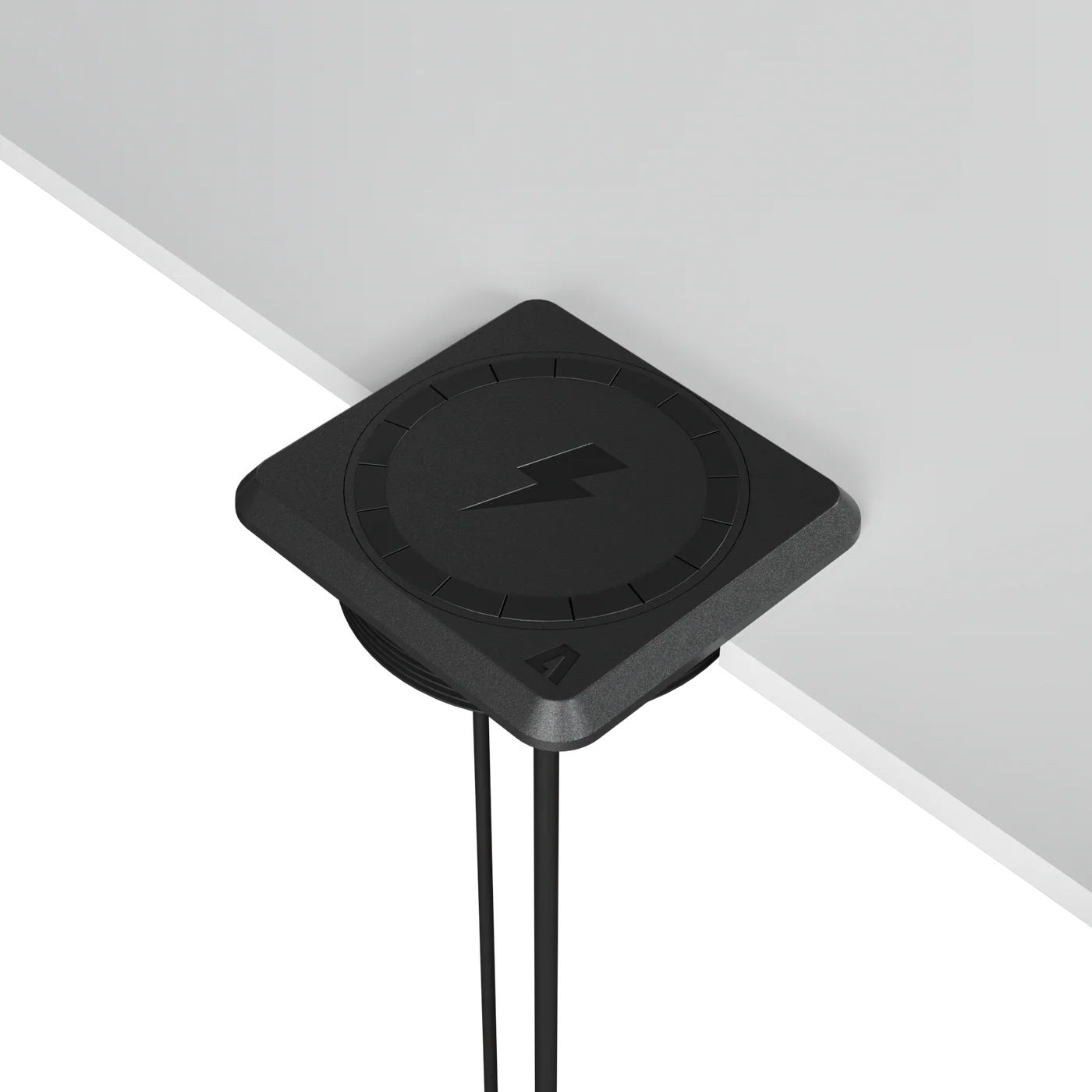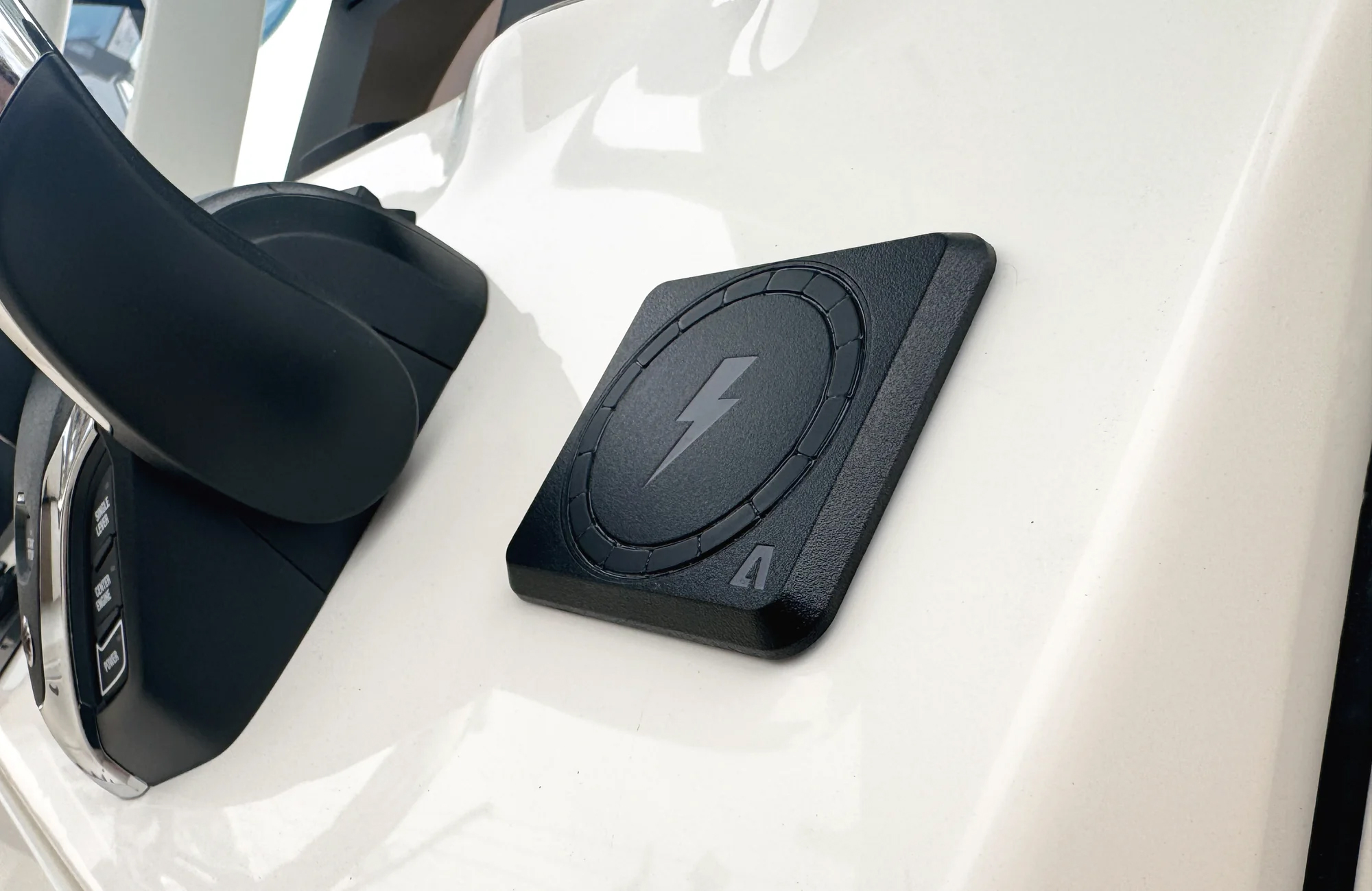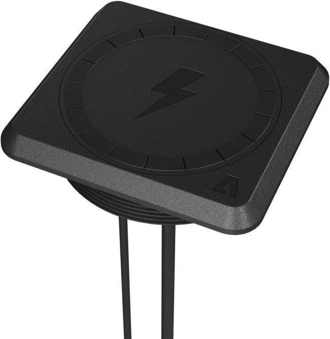 AquaAmp 800 er en rektangulær ladeplate for trådløs lading av mobiltelefon. Den er laget for innfelling, og kan lade alle telefoner som er kompatible med trådløs Qi-/Qi2-lading. Den har en ultrasterk magnet som holder kompatible telefoner på plass, selv under de tøffeste forhold. Den sterke magneten gjør at platen kan monteres vertikalt.Laderen er enkel å montere. Det er bare å borre et 62 mm hull der den skal stå, plassere laderen over hullet, og koble til 12V strøm. Ladeplaten kommer ferdig med 3M dobbeltsidig tape. På grunn av den ekstra sterke magneten, anbefaler vi å kjøpe med låsering (prod.nr. 1011364). Det er også mulig å koble til en statuslampe, som viser om telefonen lader eller ikke (prod.nr. 1011363).