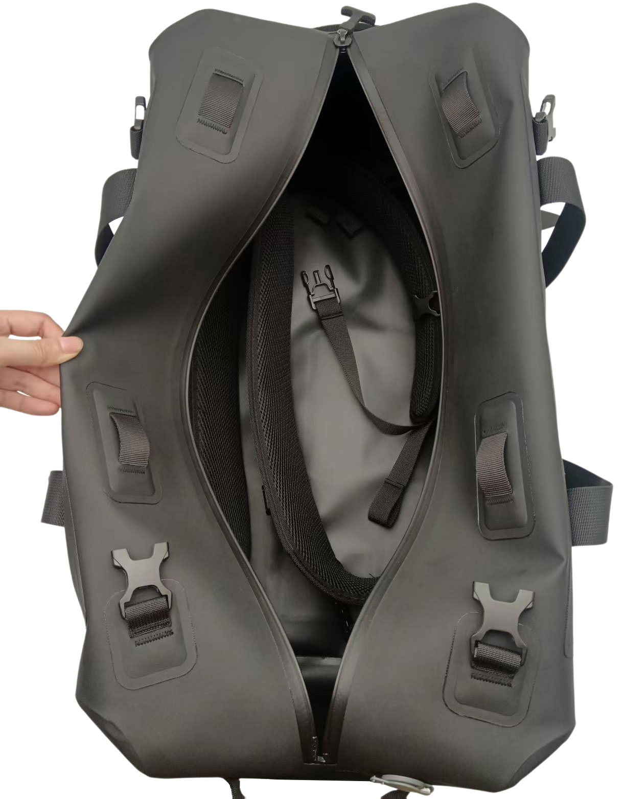 Praktisk, vanntett duffelbak fra AquaQuick. Baggen er perfekt til vannsportsaktiviteter, og til turer på regntunge dager. Den har en kraftig og lang hovedglideås, som gir god tilgang til hovedrommet. I tillegg har den ytterlomme med glidelås og festepunkter som gjør det mulig å feste utstyr på utsiden.Baggen er laget i kraftig TPU-materiale, og har vanntett glidelås. Den har ventil, som gjør det mulig å klemme ut luft, for å gjøre den mindre om du ikke fyller den helt opp. Den leveres med skulderreimer for bæring på ryggen, som en ryggsekk.
