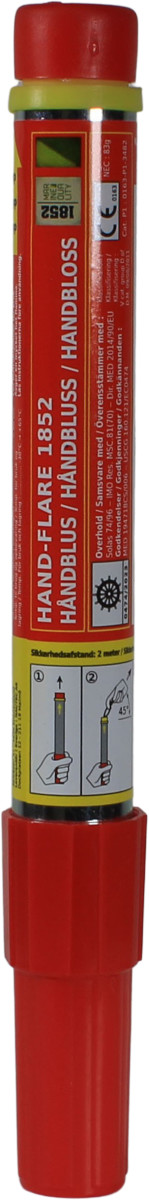 Håndholdt nødbluss brukes når du ferdes nærme kyst/land. Det lyser rødt 15.000 cd i ca 60 sekunder og kan sees i opp til 2 nm avstand.Nødblusset kan sees både i dagslys og på natten. Nødblusset leveres med instruksjon på norsk og engelsk samt med forklarende tegninger/skisser.