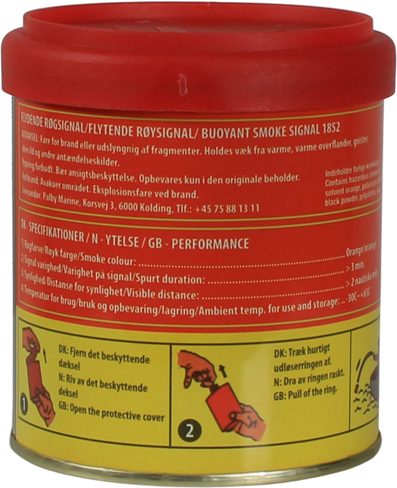 Flytende røyksignal sender ut oransje røyk i ca 3 minutter. Røyksignalet er meget vellegnet til helikopterredninger - kast blusset så langt opp mot vinden som mulig, så vil røyken være til stor hjelp for en helikopterpilot. Røyksignalet kan kun sees i dagslys. Røyksignalet leveres med instruksjon på norsk og engelsk samt med forklarende tegninger/skisser.