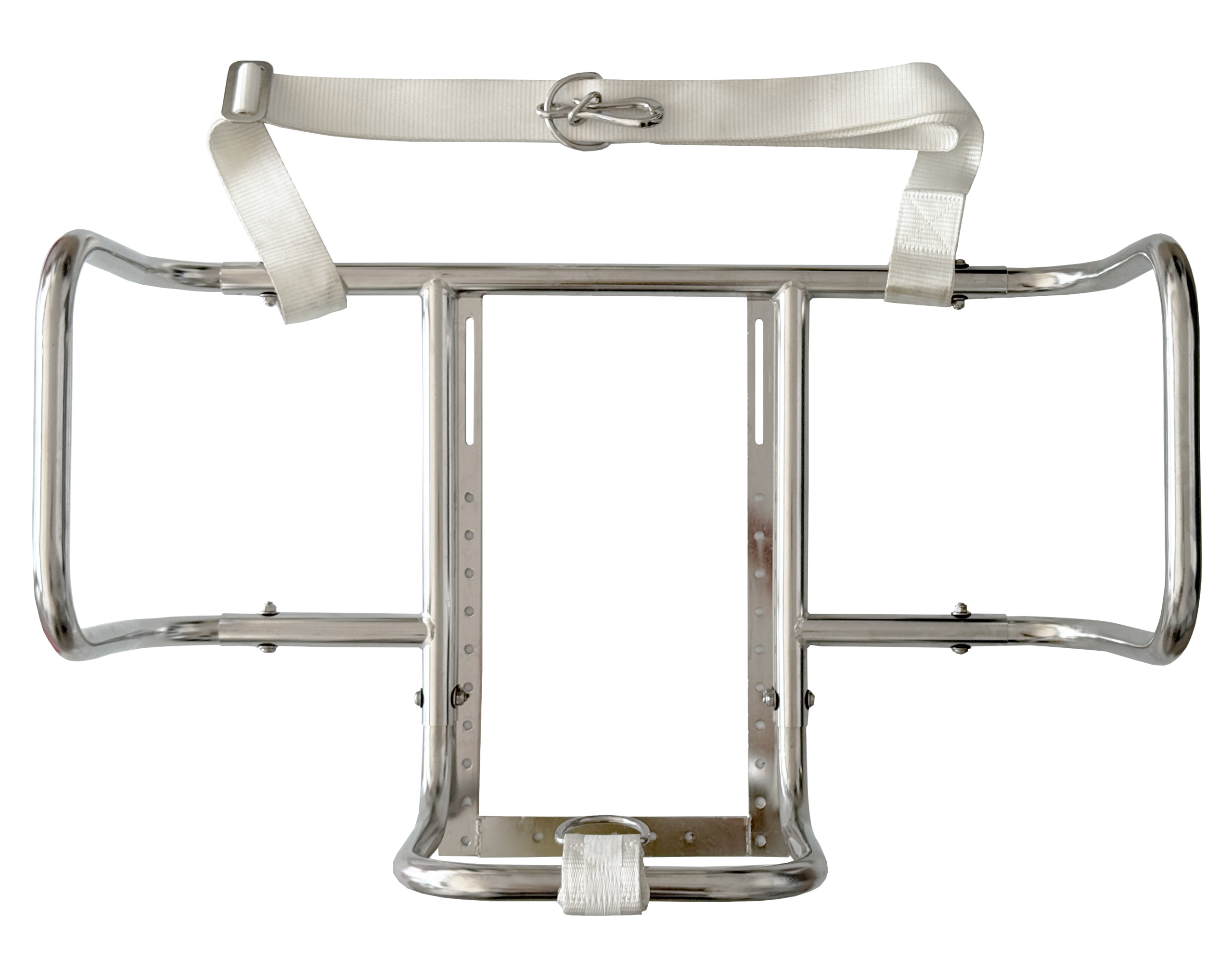 Rustfri krybbe for redningsflåter, tilpasset både horisontal og vertikal montering – passer flåter fra 4 til 12 personer.