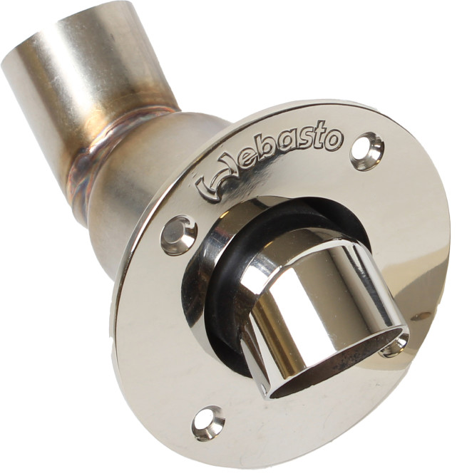 Eksosgjennomføring til Webasto vannvarmere. Gjennomføringen er laget i rustfritt stål, og holder høyeste kvalitet. Velg mellom vinklet eller rett utvendig stuss. Tetningspakninger og nødvendige festeskruer medfølger.