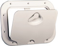 ASA-luke i meget solid utførelse. Egner seg ypperlig som dreggluke og luke til forskjellige oppbevaringsrom. Luken har tetningslist av gummi og hengselpinne. Fronten har antisklimønster, og åpnes ved hjelp av ett/to håndtak. Luken leveres med pyntekopper som skjuler skruehull. Leveres med eller uten lås. På 1015525 kan lokket tas helt av.